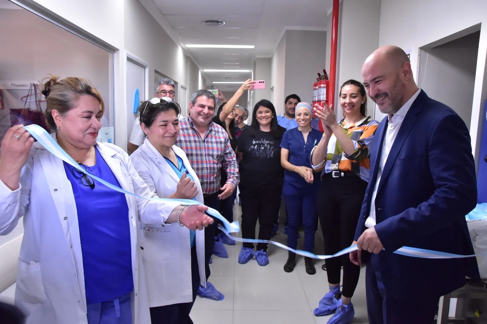 El ministro de Salud, Lucas Zampieri, junto a la secretaria de Asistencia en Salud Pública, Johana Carrizo, y las autoridades del Hospital, recorrieron el Servicio de Esterilización donde se encuentra la cámara, que está diseñada para esterilizar materiales de uso médico y de laboratorio.