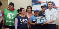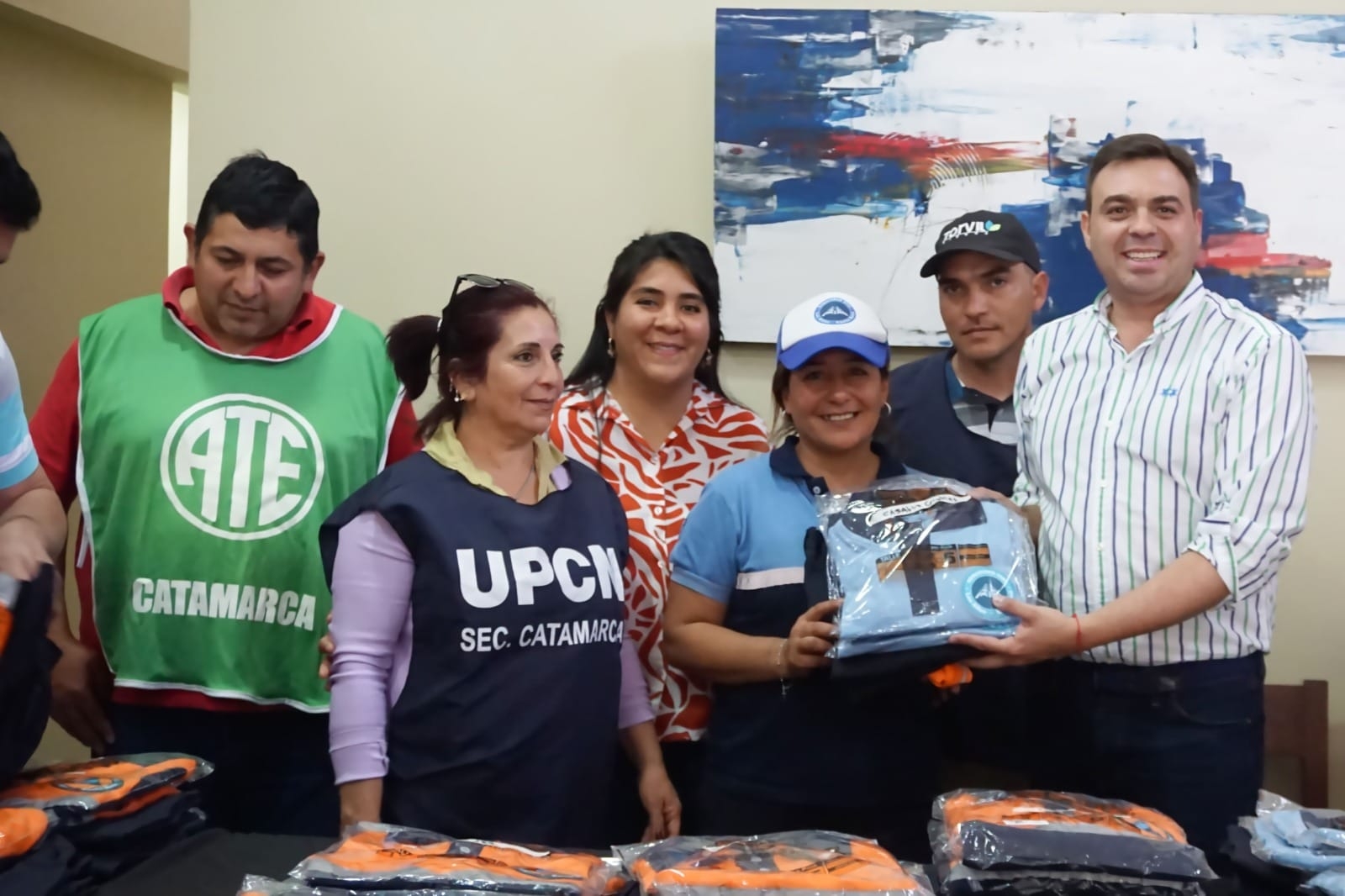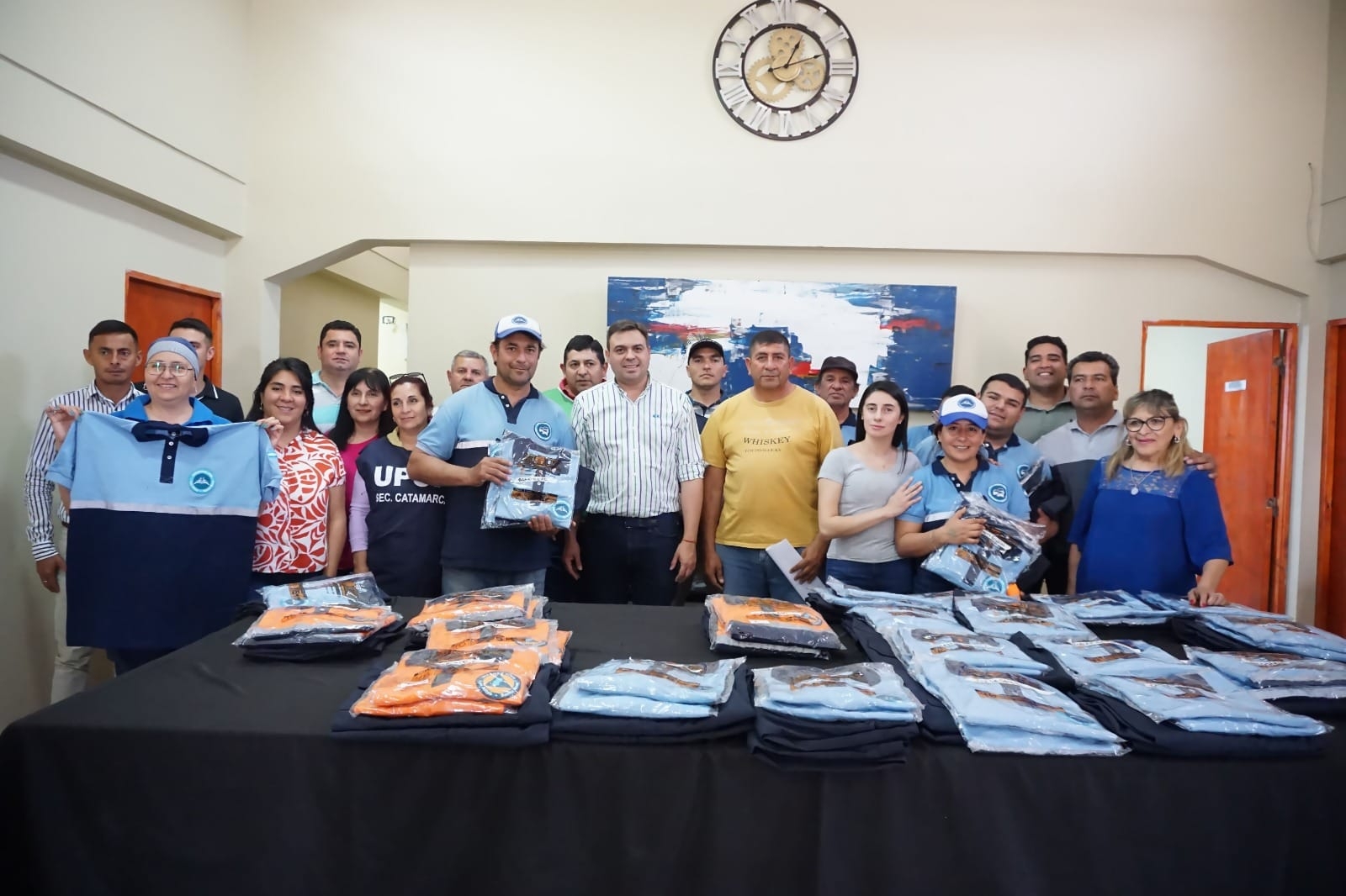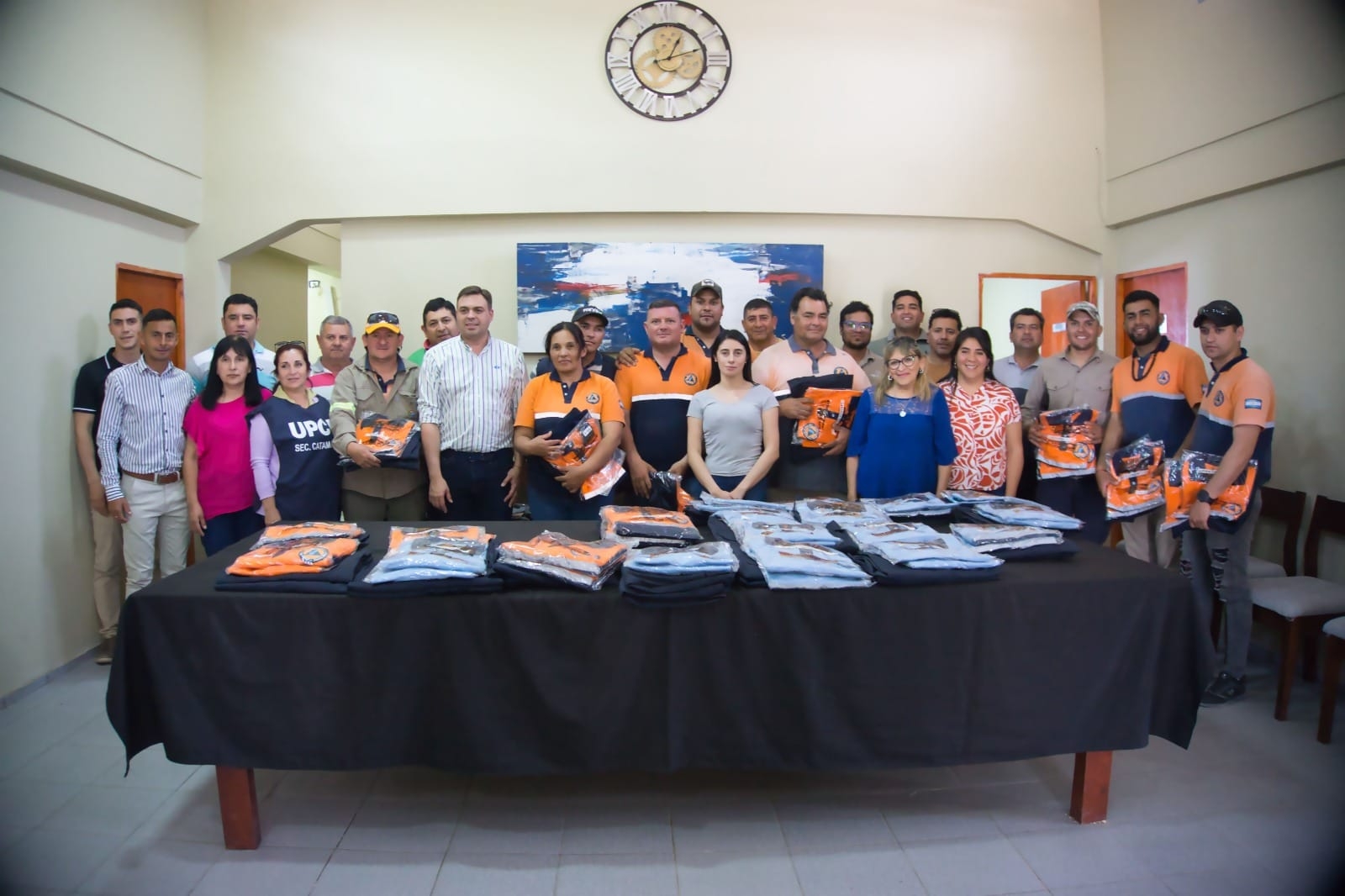 El intendente Raul Barot junto a concejales, funcionarios del municipio y los Gremios ATE y UPCN realizaron la entrega de indumentaria a los empleados del área de defensa civil y transito del municipio.