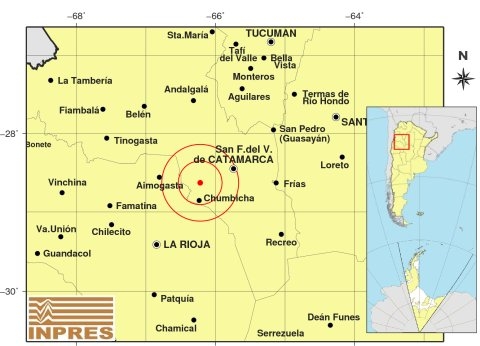 Epicentro: 51 km al SO de San F. Del Valle De Catamarca; 105 km al NE de La Rioja; 24 km al N de Chumbicha -28.630 (lat) -66.220 (long)