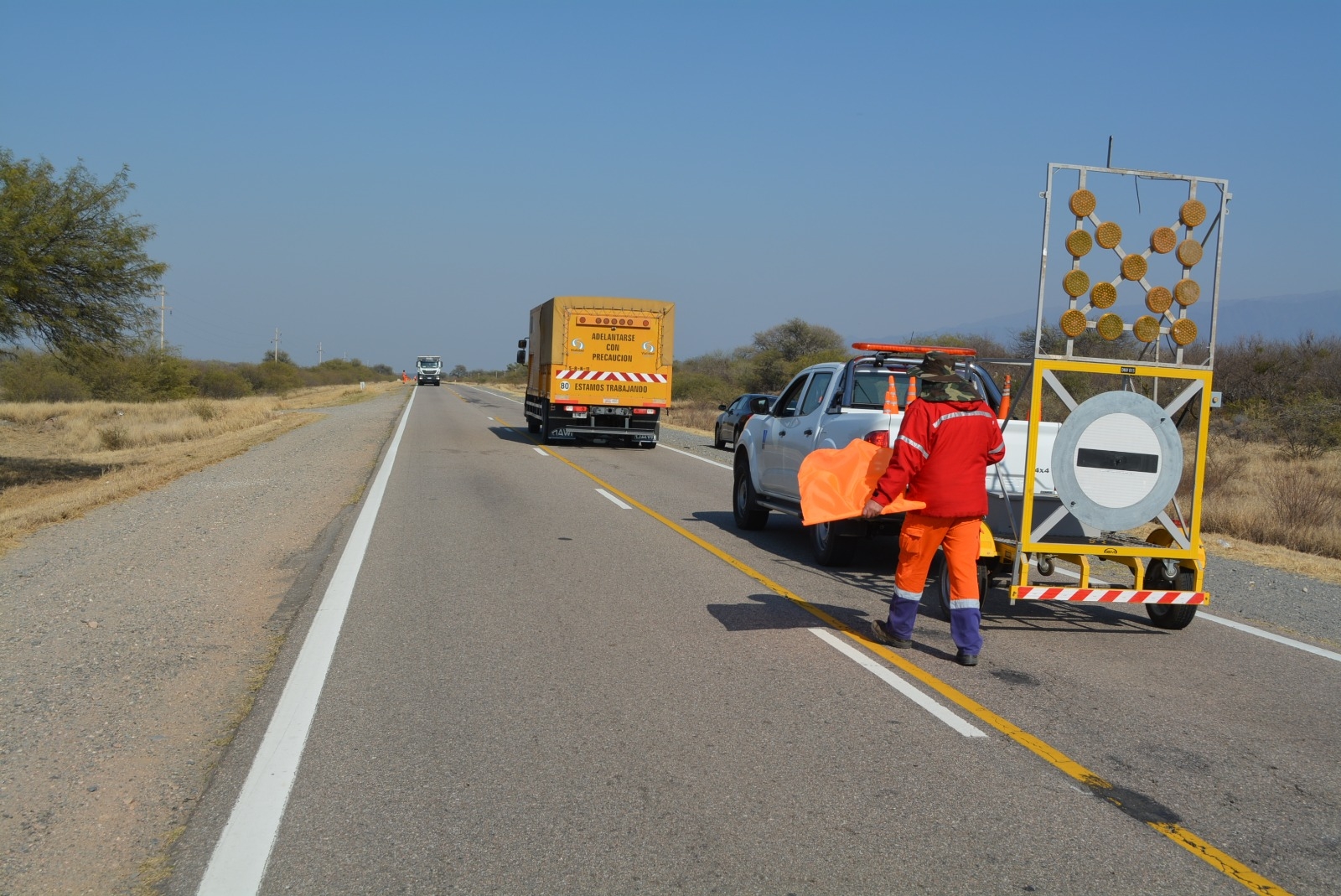 Para esta tarea se utiliza un equipo especial y vehículos de apoyo, los que se desplazan por la trocha descendente (sentido Catamarca - La Rioja), a una velocidad de 3 kilómetros por hora. Por esa razón, en el frente de trabajo se habilitará el tránsito por media calzada en ambos sentidos, con auxilio de banderilleros.