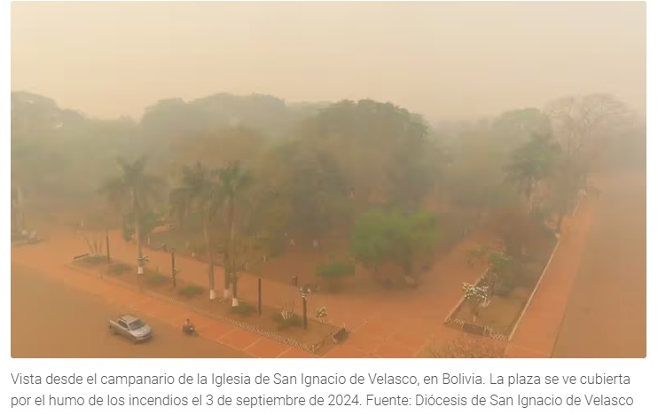 Una cortina de humo pesado, producto de los incendios forestales en la selva amazónica boliviana, se aproxima a 10 provincias del norte y centro de la Argentina, según advirtió en un informe especial el Servicio Meteorológico Nacional (SMN). Se especula, además, que de persistir los vientos del norte, la gran nube de ceniza podría llegar hasta el Área Metropolitana de Buenos Aires entre lunes y martes.