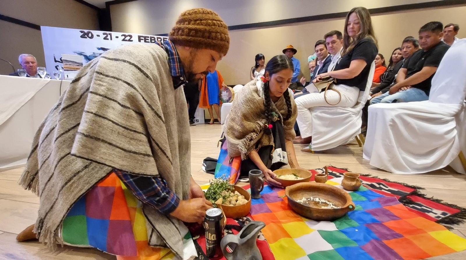 La presentación también incluyó números artísticos que resaltaron las tradiciones culturales locales. La talentosa coplera salteña Mariana Carrizo emocionó a los presentes con sus coplas, narrando historias sobre la belleza de la tierra, la flora y la fauna de la Puna. Ella estuvo acompañada por el coplero antofagasteño Marcelo Vázquez y el guitarrista Miguel Rivainera, quien rindió homenaje al músico catamarqueño Polo Giménez, seguido por una conmovedora representación de una corpachada en honor a la Pachamama. Además se agasajo a los presentes con platos gastronómicos realizados con ingredientes de la Puna por la reconocida cocinera de El Peñón Elina Ramos.
