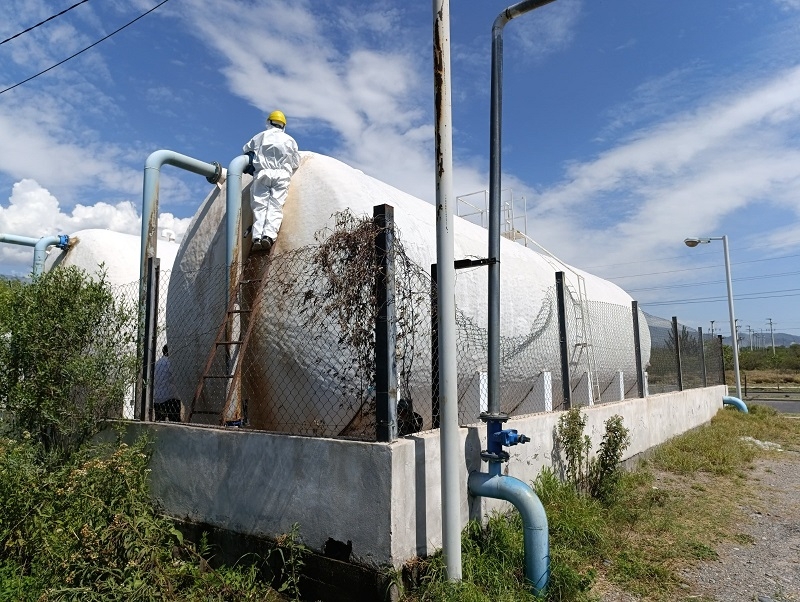 Estas intervenciones son necesarias debido a una rotura en el punto de transición entre la cañería de acero rígido y el ingreso superior del tanque PRFV. Este daño fue ocasionado por la interacción de materiales distintos en esa conexión, que, con el uso cotidiano, el movimiento del agua y la presión generada, han provocado daños en la estructura de PRFV del tanque.