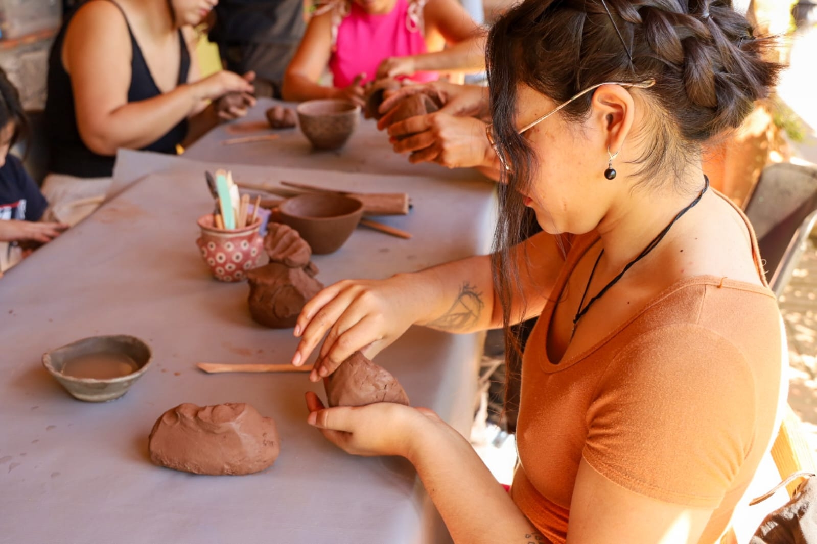 Durante viernes y sábado la artesana Sofía Goulu enseñó a un grupo de visitantes cómo moldear en cerámica el arte de la cultura Aguada, cuyos restos arqueológicos se encuentran en el sitio y gran parte de las piezas se exhiben en el Centro de Interpretación.
