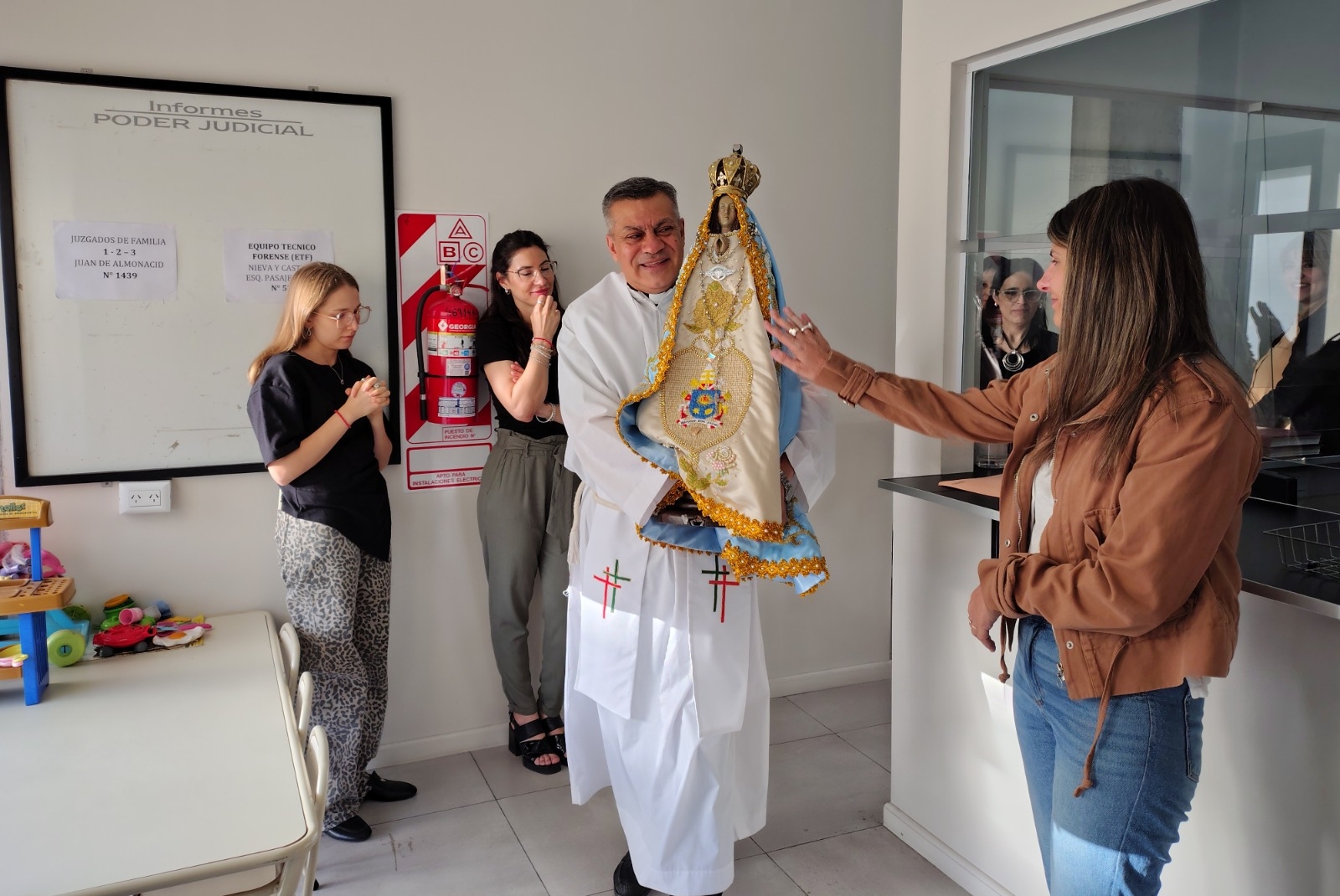 A primeras horas de la mañana, la Madre del Valle llegó a la Oficina de Asistencia a la Víctima del Delito y Equipo Técnico Forense del Poder Judicial, donde fue recibida por sus autoridades y personal que allí se desempeña.