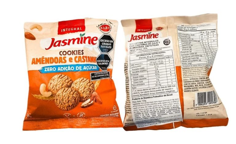 El producto en cuestión son las galletitas integrales de la marca “Jasmine”, con nombre fantasía “Cookies amendoas e castanhas”, lote X19225B01, con fecha de vencimiento 11/7/2026. El etiquetado indicaba que eran “libres de gluten”, información que resultó ser falsa, ya que los productos contienen harina de trigo y no cuentan con la autorización de ANMAT para usar el logo de producto sin TACC.