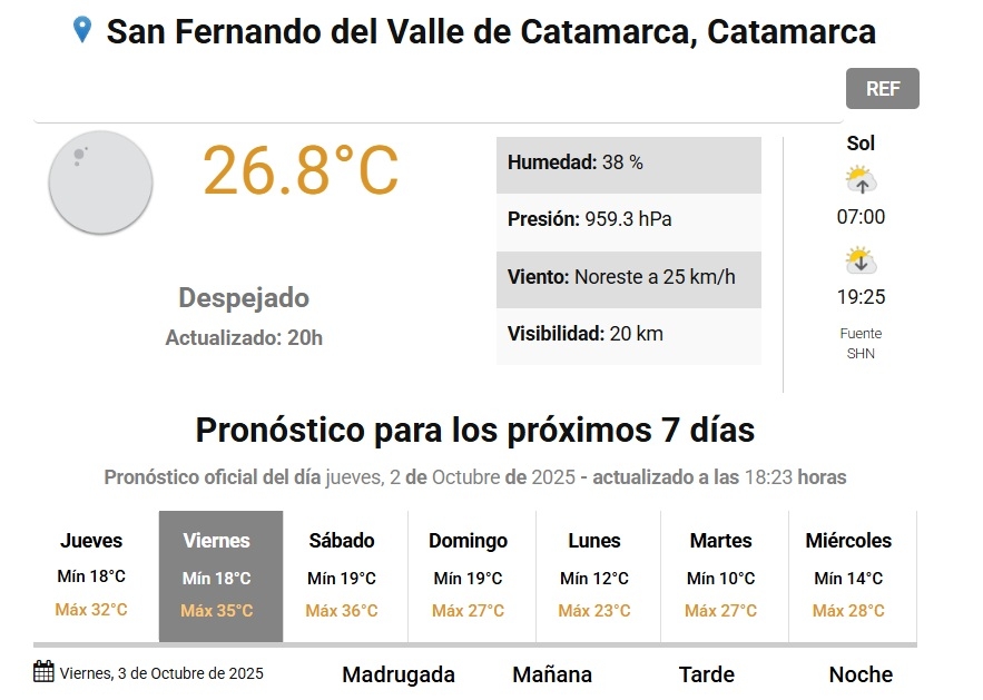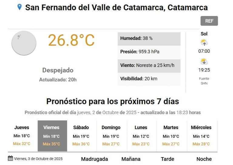 De acuerdo al organismo nacional, este viernes la máxima sería de 35° mientras que el sábado será de 36°. Luego, a partir del domingo, habrá un descenso de la temperatura y las máximas estarán en el orden de los 26°.