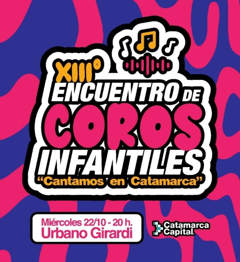 El Teatro Girardi será sede de una nueva edición del encuentro “Cantamos en Catamarca”, que reunirá a coros de toda la provincia y la región. Participarán el Coro Municipal de Niños y Niñas de SFVC, el Coro del Colegio del Carmen y San José, el Taller de Canto del Colegio Pía Didoménico, el Coro del Conservatorio Mario Zambonini y el Taller de Canto y Técnica Vocal – EVEA.