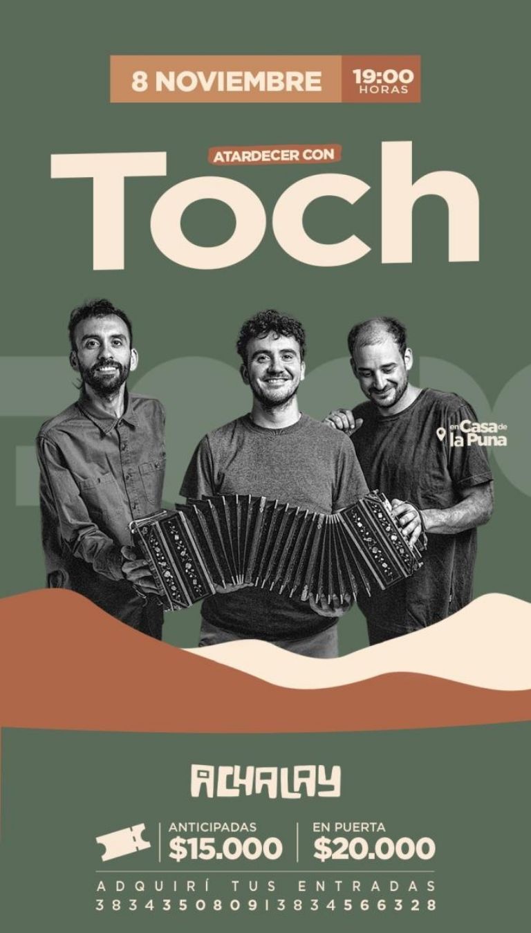 El trío cordobés Toch vuelve a la provincia con un atardecer musical especial. Folk, tango y reggae se mezclan en un show íntimo y enérgico que celebra sus 17 años de trayectoria.