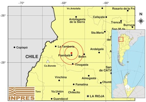 viernes, 3 de octubre de 2025 16:23 viernes, 3 de octubre de 2025 16:23 Tiempo local: 2025-10-03 15:11:38 Tiempo GMT: 2025-10-03 18:11:38 Epicentro: 52 km al N de Tinogasta; 59 km al O de Belén; 80 km al SE de La Tambería -27.602 (lat) -67.624 (long) Magnitud: 2.5 Profundidad: 139 km