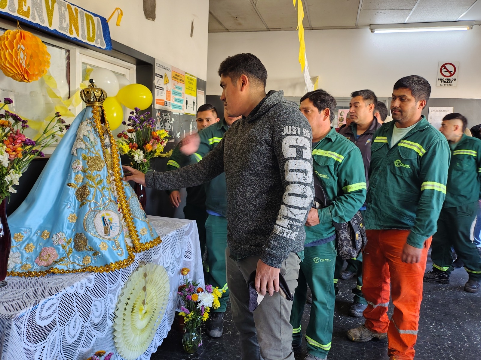 En el cierre de una nueva semana de su recorrido por instituciones civiles y organismos públicos del medio, durante la mañana de este viernes 31 de octubre, la imagen peregrina de Nuestra Señora del Valle recibió el tributo de quienes realizan sus tareas diarias en los talleres de Vialidad Provincial. Con mucho entusiasmo, le dieron la bienvenida en el predio adornado especialmente para esta ocasión especial.