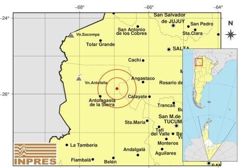 Epicentro: 52 km al SE de Incahuasi; 54 km al NE de Antofagasta; 54 km al NE de Antofagasta -25.857 (lat) -66.92 (long)