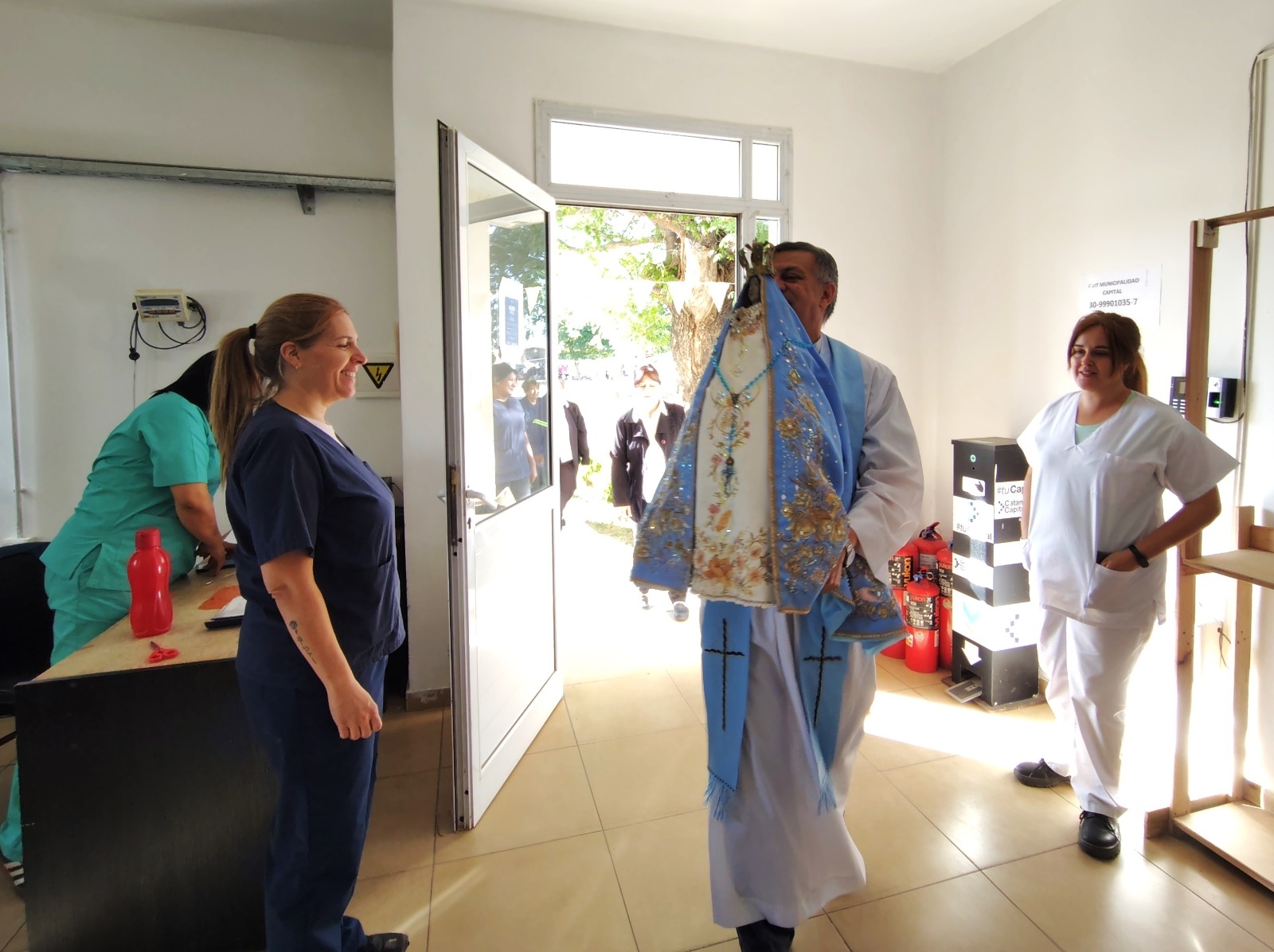 La Sagrada Imagen fue recibida en las oficinas de la Administración, desde donde luego recorrerá los pabellones donde se encuentran distribuidos los distintos puestos de trabajo.