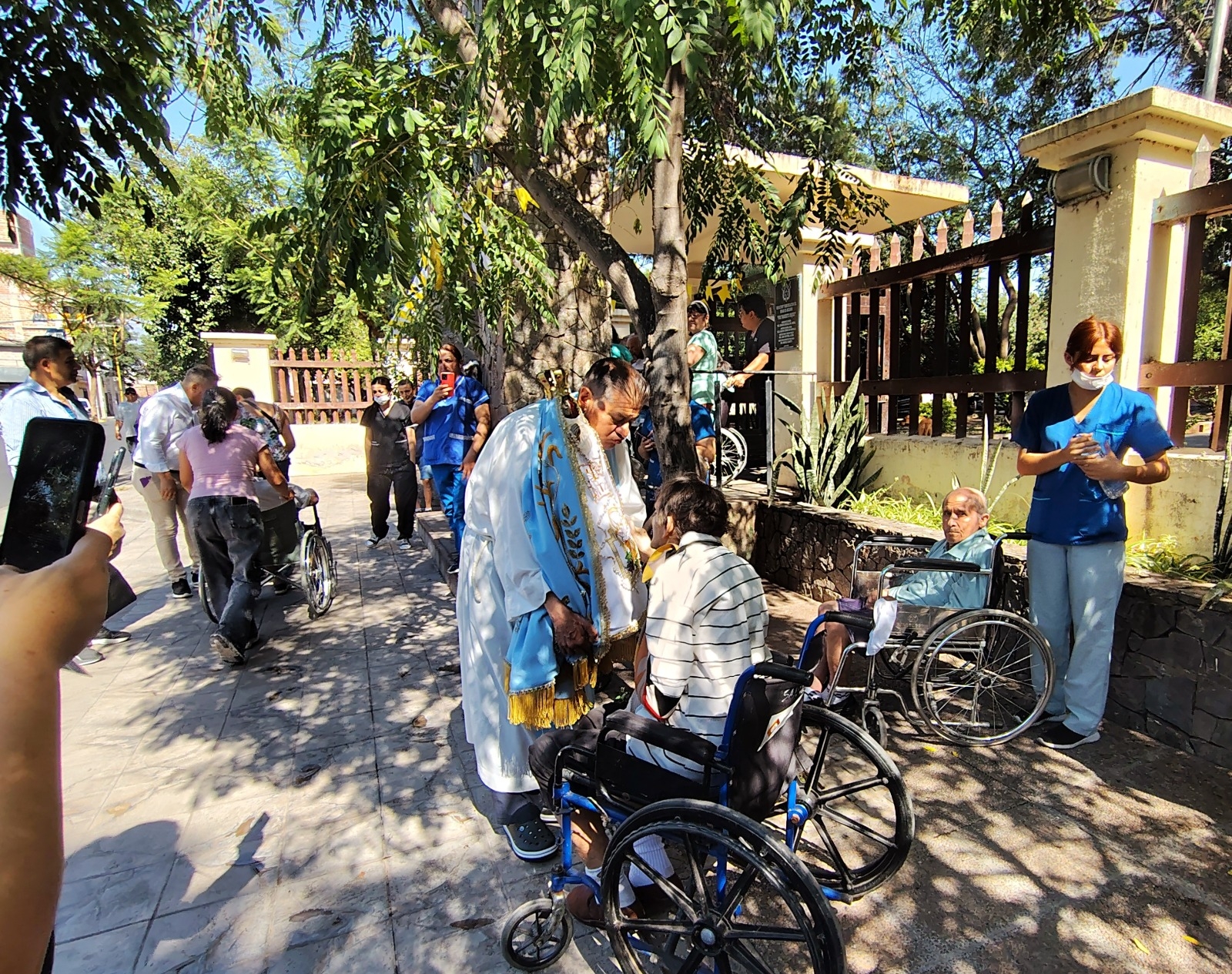 También en esta mañana, con mucha emoción, directivos, empleados y residentes del Hogar de Ancianos Fray Mamerto Esquiú le dieron una calurosa bienvenida a la Madre Morena en el ingreso al predio ubicado en avenida Belgrano entre calles Salta y Tucumán de la ciudad capital.