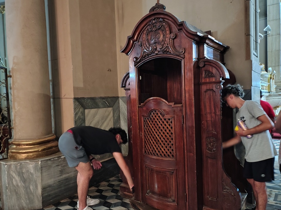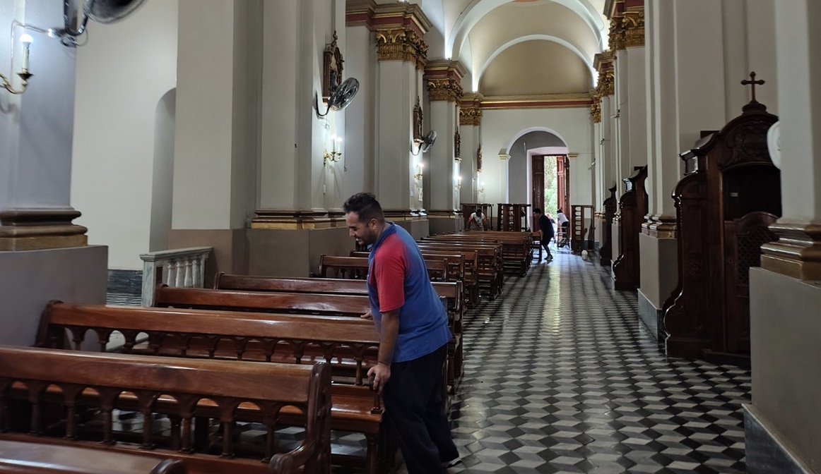 Con mucha alegría y entrega generosa limpiaron los pisos, bancos, confesionarios, imágenes sagradas, en fin, todo el recinto sagrado, de manera que la Casa de la Madre esté brillante para recibir a los hermanos que llegarán a honrarla.