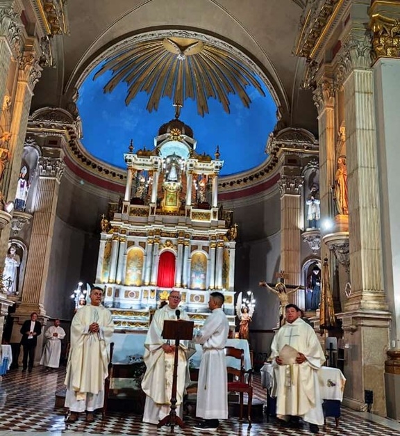 La Eucaristía fue concelebrada por los sacerdotes Juan Ramón Cabrera y Ramón Carabajal, rector y capellán del Santuario Catedral, respectivamente, con la participación de los fieles que se congregaron en torno al altar para vivir esta gran fiesta de la fe.