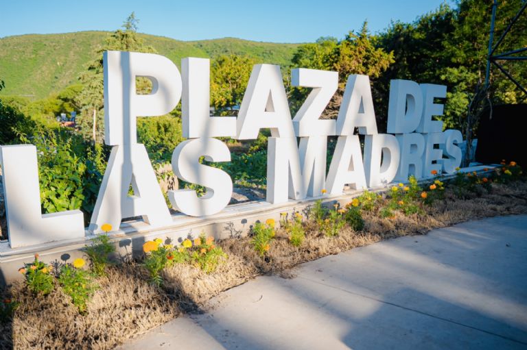 Uno de los trabajos habilitados fue la puesta en valor de la Plaza de las Madres, donde se realizaron caminerías, cartelería, instalación de luminarias LED, colocación de mobiliario urbano y un parquizado completo. La obra incluyó además la construcción de un aljibe que se abastece con agua de vertiente natural, incorporando una solución sustentable para el cuidado y mantenimiento del espacio verde.