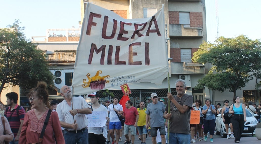 La convocatoria en repudio a las expresiones homofóbicas del presidente Javier Milei, en Davos, incluyó -en las diferentes consignas- el rechazo a las políticas hambre, persecución, despidos y sometimientos del gobierno nacional, con maltrato y violencia expresa, no solo al colectivo de las diversidades, sino en forma generalizada a todos los trabajadores, los jubilados, la educación, las universidades y la salud públicas, con el únivoco grito de "Milei, basura...!!!...vos sos la dictadura...!!!"