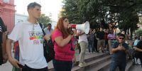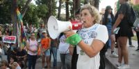 Abriendo la lista de entusiastas oradores habló Ale Loza Trionfini, quien, como representante de la Asamblea Autoconvocada Antifascista y Antirracista trasmitió “nuestro más energético repudio a los dichos del presidente Milei, que representan un ataque a los derechos conquistados por las mujeres y las disidencias”.