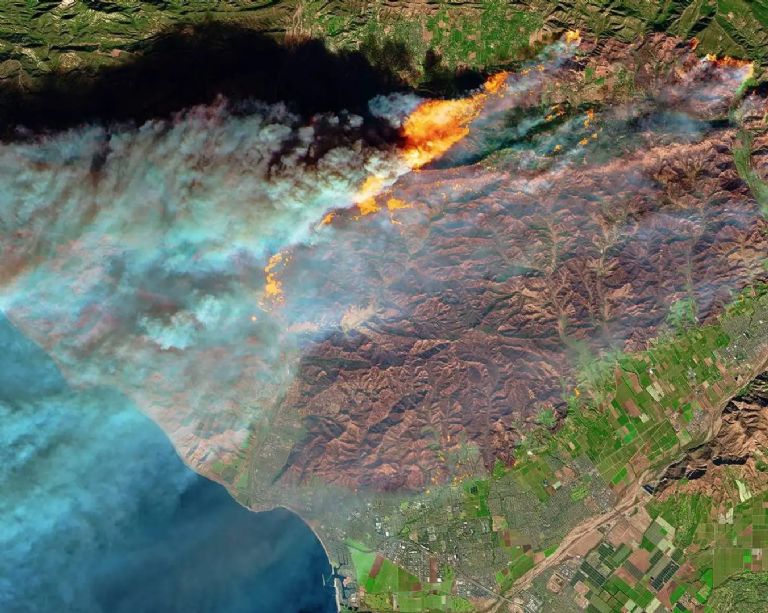 Un espeso humo salía de varios incendios en el sur de California cuando el satélite Terra de la NASA capturó esta imagen.