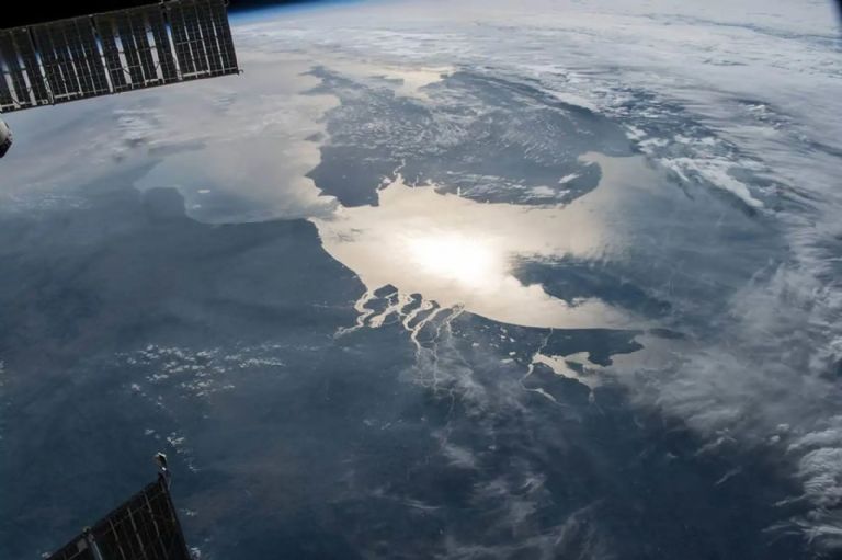 La Estación Espacial Internacional orbitaba sobre Alemania cuando un miembro de la tripulación de la Expedición 56 fotografió el Canal de la Mancha y el Mar del Norte iluminados por el destello del Sol.