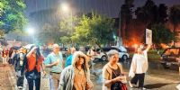 Concluido este espacio de reflexión en torno a figura del Beato Esquiú, bajo la copiosa lluvia que caía en la noche sabatina, los peregrinos junto con el padre Marcelo Amaya, asesor de la Pastoral de Comunicación Social, comenzaron su caminar por calle Esquiú, Rivadavia y República, llevando antorchas y carteles alusivos, entre los que se observaba una imagen del Papa Francisco con una cinta de luto, como signo de este momento de tristeza por su partida, pero con la esperanza cristiana que nos anima particularmente en este tiempo pascual.