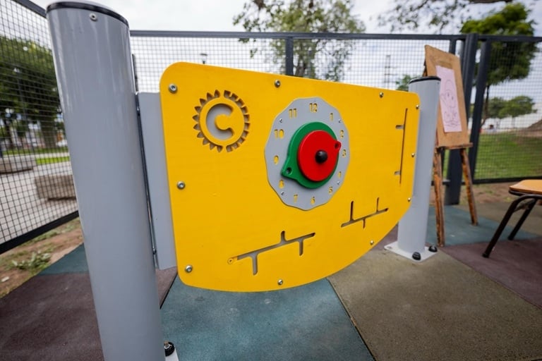El nuevo espacio cuenta con diversas propuestas de juego, como tambores musicales, paneles interactivos y una red hamaca nido, todos pensados para estimular habilidades sensoriales y motrices de los pequeños. Además, se han incorporado kits de comunicadores para facilitar la interacción entre ellos.