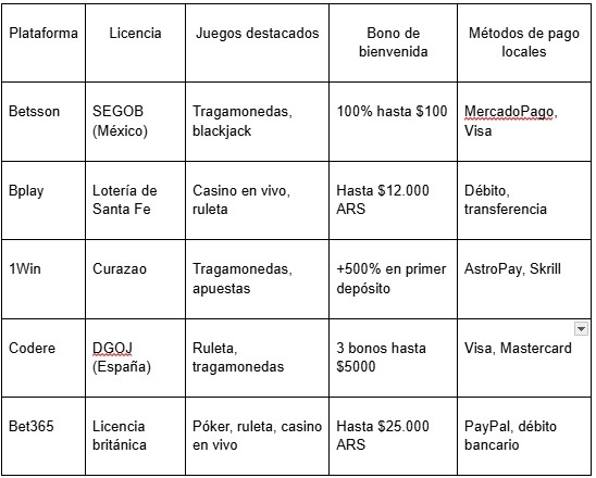 Con estos aspectos en mente, se puede construir una visión panorámica sobre cuáles son las plataformas que realmente ofrecen una propuesta integral. A continuación, presentamos una tabla comparativa con algunos de los casinos más destacados actualmente disponibles para el público argentino:
