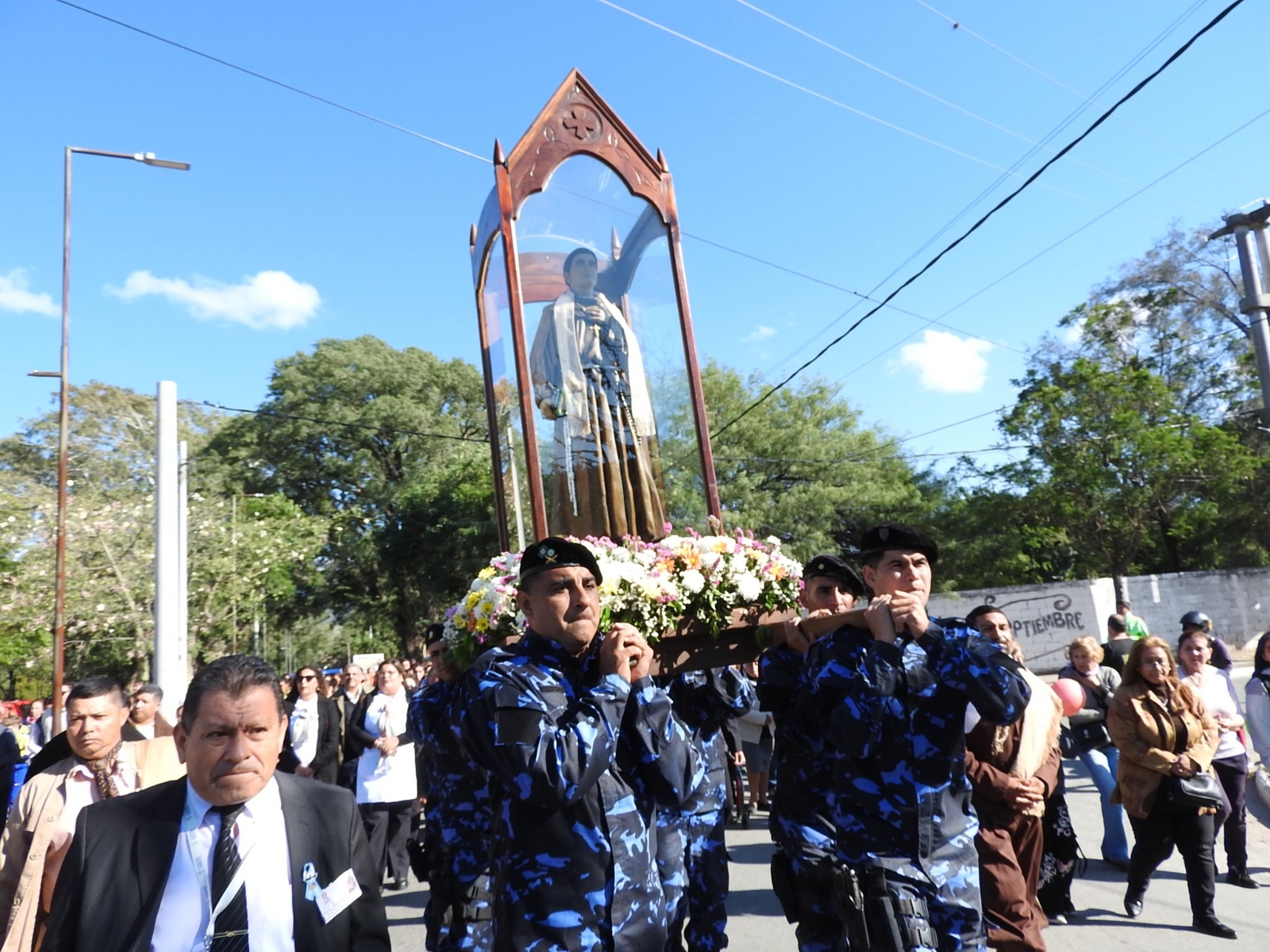 Luego de la bendición final, se realizó la procesión con la imagen del Beato Mamerto Esquiú, precedida por la Cruz procesional, las reliquias del Santo Cura Brochero, sacerdotes, autoridades presentes, peregrinos y fieles en general.