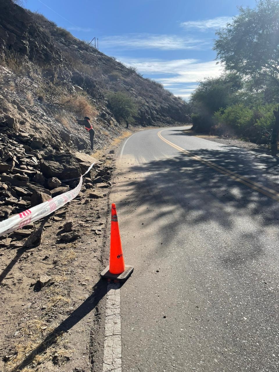 En esa zona se registraron desprendimientos menores en el borde de la calzada, que si bien no impiden completamente la circulación, podrían representar un riesgo para conductores desprevenidos.