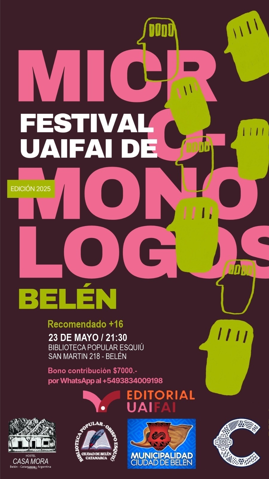 Estos cuatro Micromonólogos 2025 duran 90 minutos y están recomendados para mayores de 16 años. La reserva de entradas es a través del Whatsapp 3834009198 y su costo es de $ 7.000 por persona. Además de la reserva virtual, también hay compra presencial en la misma biblioteca desde una hora antes de la función.