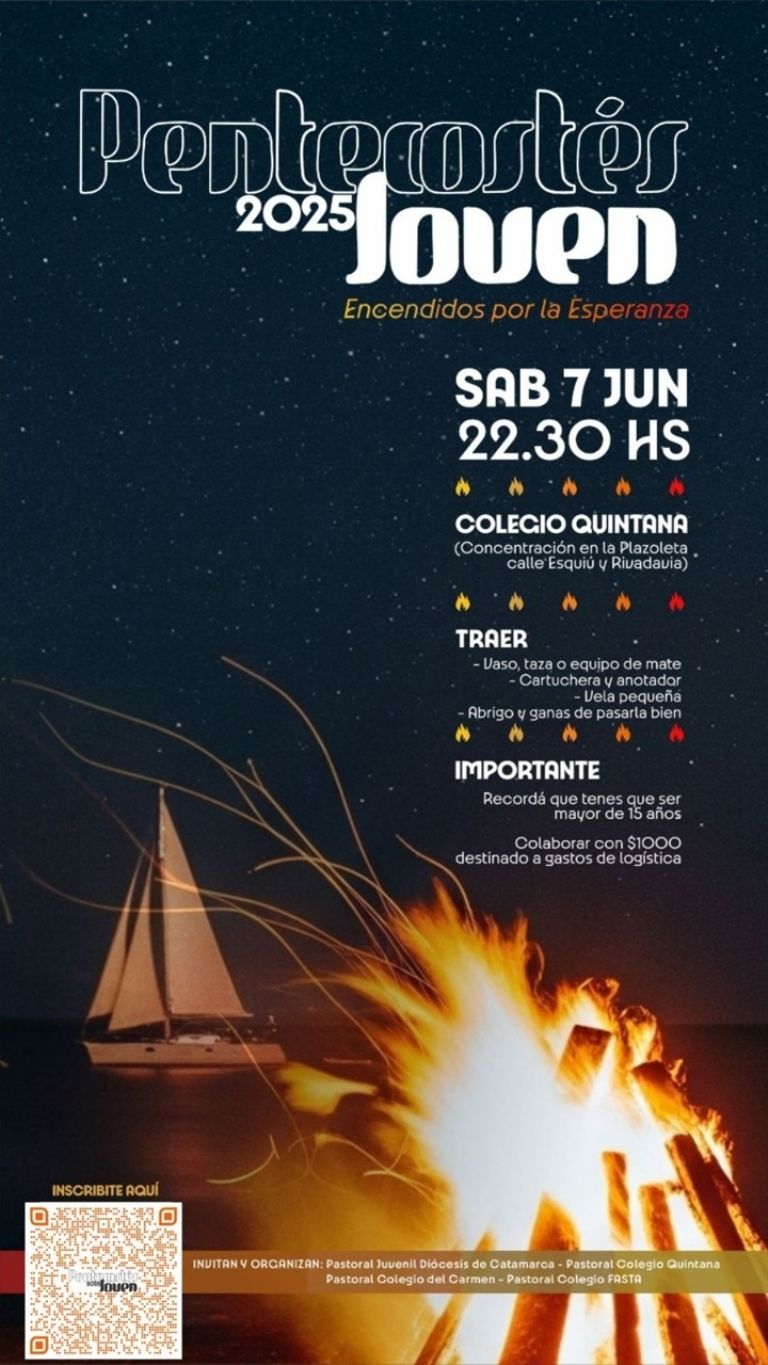 Con el lema “Encendidos por la esperanza”, jóvenes de toda Catamarca se preparan para vivir una noche muy especial el próximo sábado 7 de junio, a partir de las 22:30 hs, en el marco del Pentecostés Joven, una experiencia espiritual cargada de alegría, reflexión y fe.