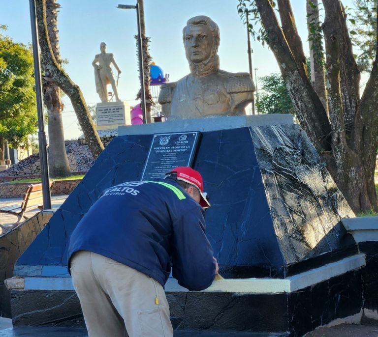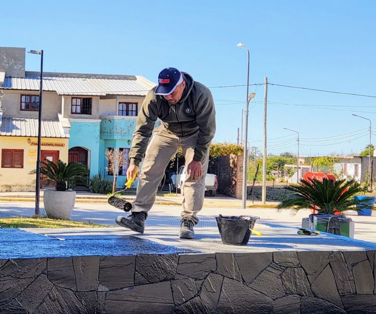 Esta semana, las tareas se concentran en la plaza principal, donde personal municipal realiza labores de pintura y reacondicionamiento general.