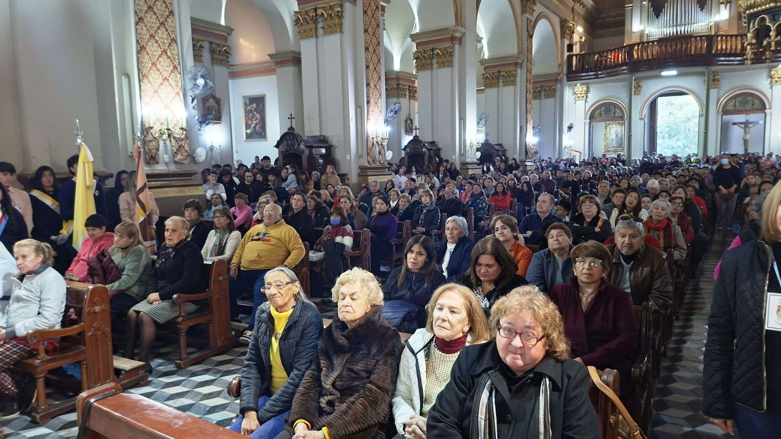 Motivados por el lema “Eucaristía, fuente viva de Esperanza” y con espíritu sinodal, colmaron el templo catedralicio para participar de la Santa Misa presidida por el vicario general, padre Julio Murúa, y concelebrada por sacerdotes del Decanato Capital, entre ellos los rectores de los Santuarios Catedral y Gruta de la Virgen del Valle, presbíteros Juan Ramón Cabrera y Santiago Granillo, respectivamente.