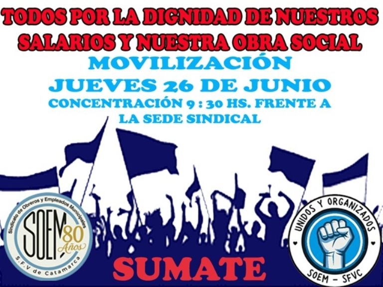 La concentración es a las 9.30, en la sede sindical, frente a la Plaza 25 de Agosto.
