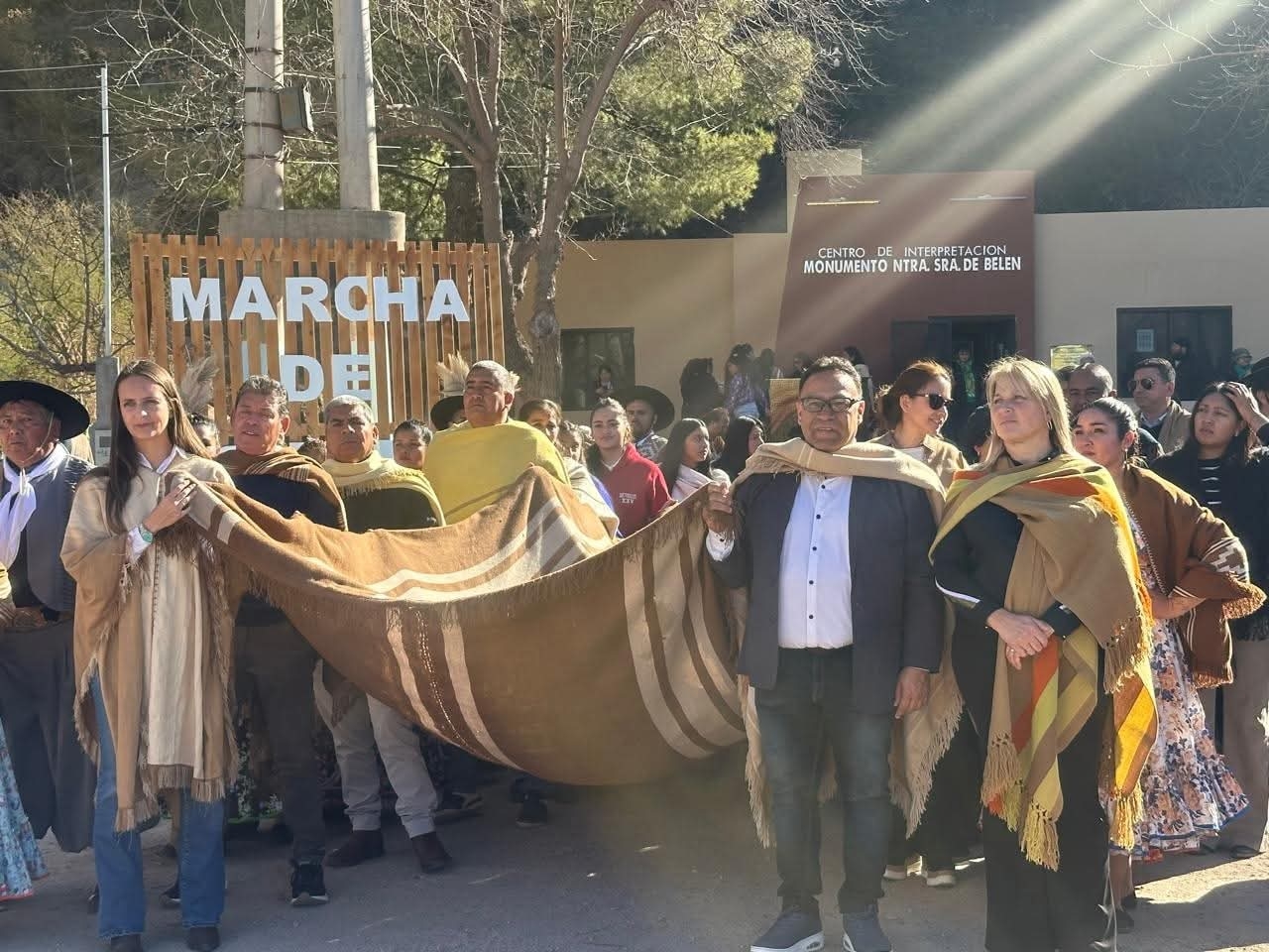 La marcha realizada ayer lunes por la tarde fue encabezada por el intendente de Belén, Cristian Yapura, quien estuvo acompañado por los intendentes de Pozo de Piedra, José Yapura, y de Londres, Roberto Rodríguez, además de la senadora provincial Soledad Blas. Todos participaron activamente de esta manifestación cultural que ya es una tradición en la Cuna del Poncho.