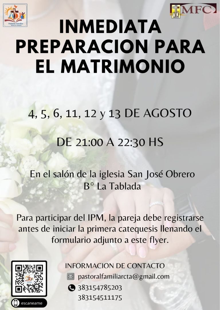Las reuniones se desarrollarán en dos etapas: del 4 al 6 y del 11 al 13 de agosto, siempre a las 21.00 horas, en el salón de la parroquia San José Obrero, ubicada en calle Santa Fe, entre Ayacucho y Pasaje Vélez Sarsfield, en el barrio La Tablada.