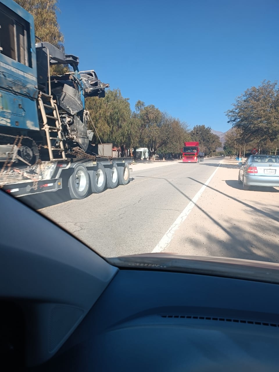 Estos equipos, de grandes dimensiones, se desplazan a baja velocidad y superan el ancho del carril descendente, por lo que se recomienda especial cuidado al momento de efectuar maniobras de sobrepaso.