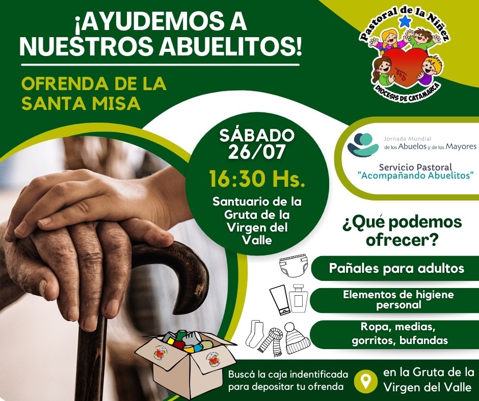 A las 17.00 se celebrará la Santa Misa. Como ofrenda se puede llevar pañales para adultos, elementos de higiene personal, ropa de abrigo, medias, gorros, bufandas. Para ello habrá cajas identificadas donde dejar las donaciones.