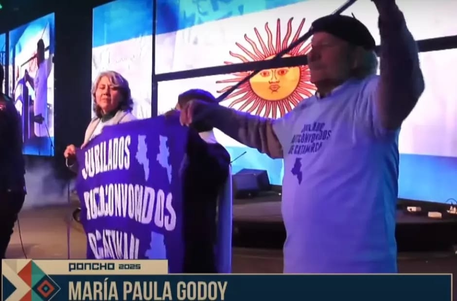 Durante su presentación en la Fiesta Nacional e Internacional del Poncho, la cantora que reside hace años en nuestra provincia María Paula Godoy destacó el reclamo de los Jubilados Autoconvocados de Catamarca invitando a tres de sus representantes.