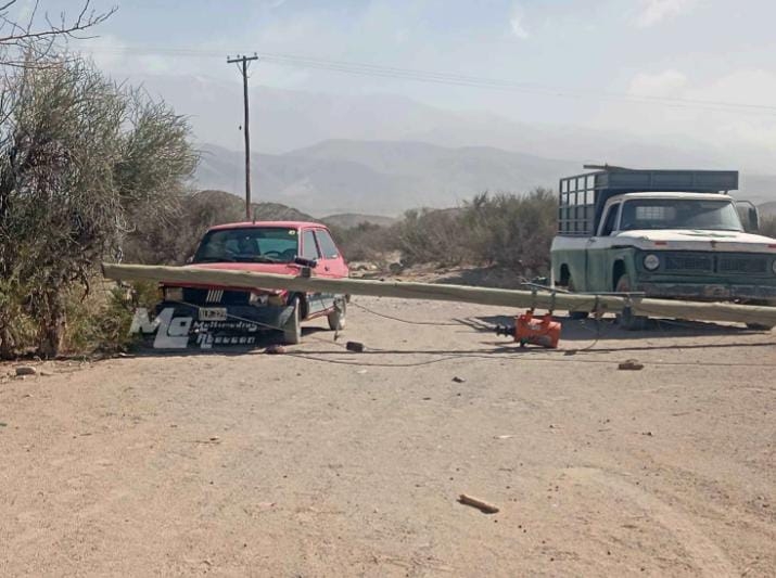 Durante la jornada del viernes, un intenso viento Zonda azotó nuevamente a la región de Fiambalá y sus distritos, dejando a su paso consecuencias que encendieron las alarmas entre los vecinos. Uno de los hechos más preocupantes ocurrió en la localidad de Palo Blanco, donde un poste del tendido eléctrico cayó violentamente sobre un vehículo Fiat 147, generando gran temor entre los presentes.