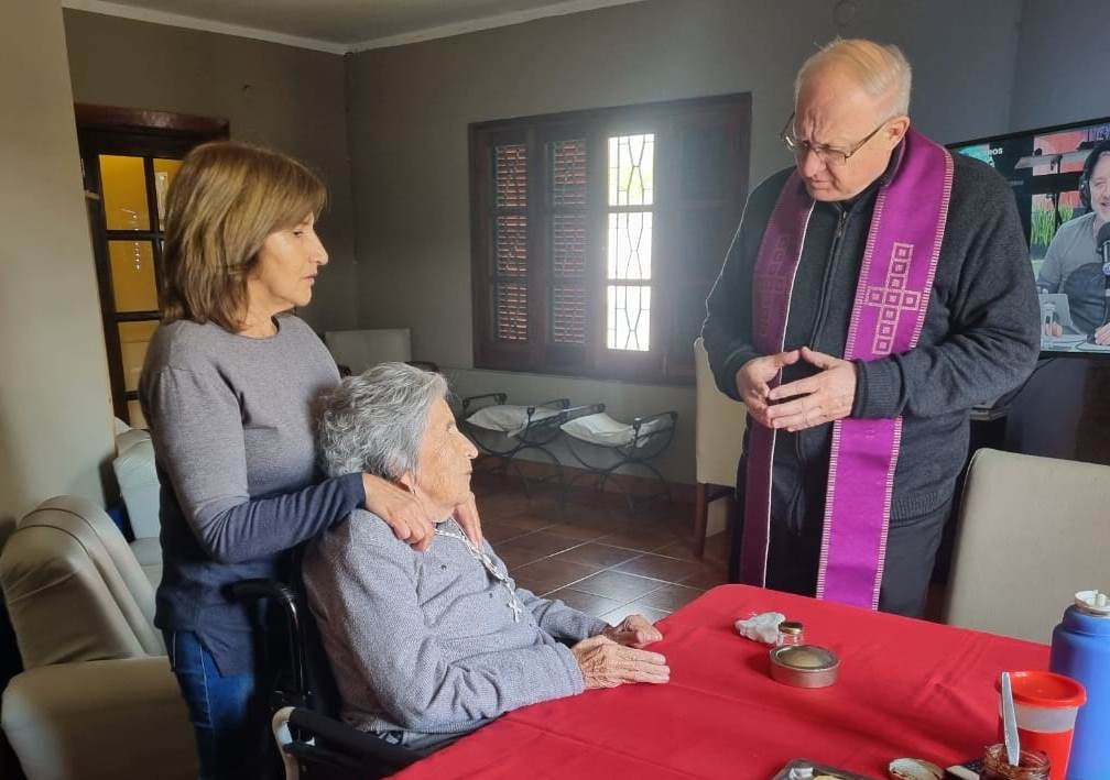 En la visita a los enfermos asistió a Mirta, Ramona, Marta, Lila, Luis, Elina María del Valle, Cristina, Manuela Andrea y familia Nieva, quienes recibieron los Sacramentos de la Unción de los Enfermos y de la Comunión.