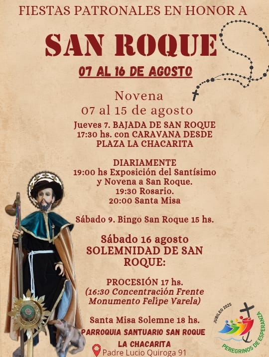 Este jueves 7 de agosto se inician las fiestas patronales en honor de San Roque, con la Bajada de la sagrada imagen y la caravana desde la plaza de La Chacarita.