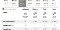 Además, durante todo el jueves, hay probabilidades de un 40% que se registren lluvias aisladas; lo mismo que para el viernes a la mañana. Ya viernes hacia la tarde noche desaparecen las posibilidades de precipitaciones.