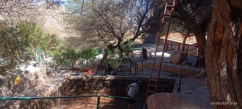 En el día de hoy personal de Defensa Civil de la Municipalidad de Fiambalá en conjunto con el área de turismo realizó trabajos de mantenimiento en sector de duchas, nuevas barandas y en lugares específicos del complejo termal.