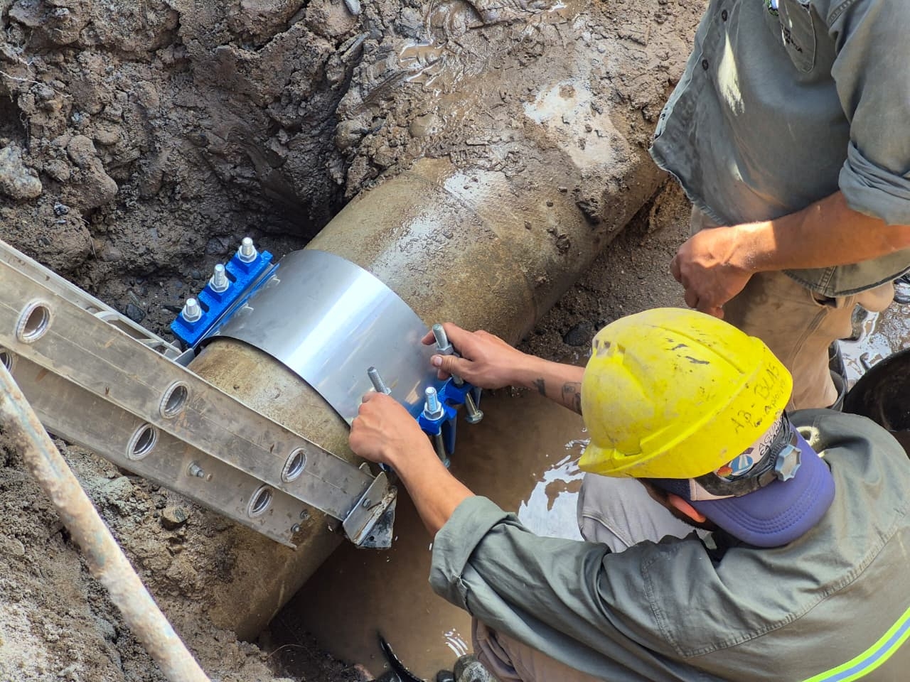 Aguas de Catamarca informa que finalizó la reparación de cañería de 300 mm en calle Junín y Mate de Luna, que afectó al sector céntrico de la ciudad y sus alrededores.