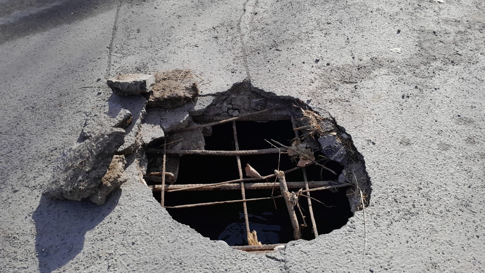 Según señalaron los vecinos en diálogo con Radio Valle Viejo, es un reclamo que lleva su tiempo y trata de un hueco en pleno puente por el que circula transporte pesado sobre una estructura obsoleta que va cediendo por partes y que en cualquier momento colapsará por completo.
