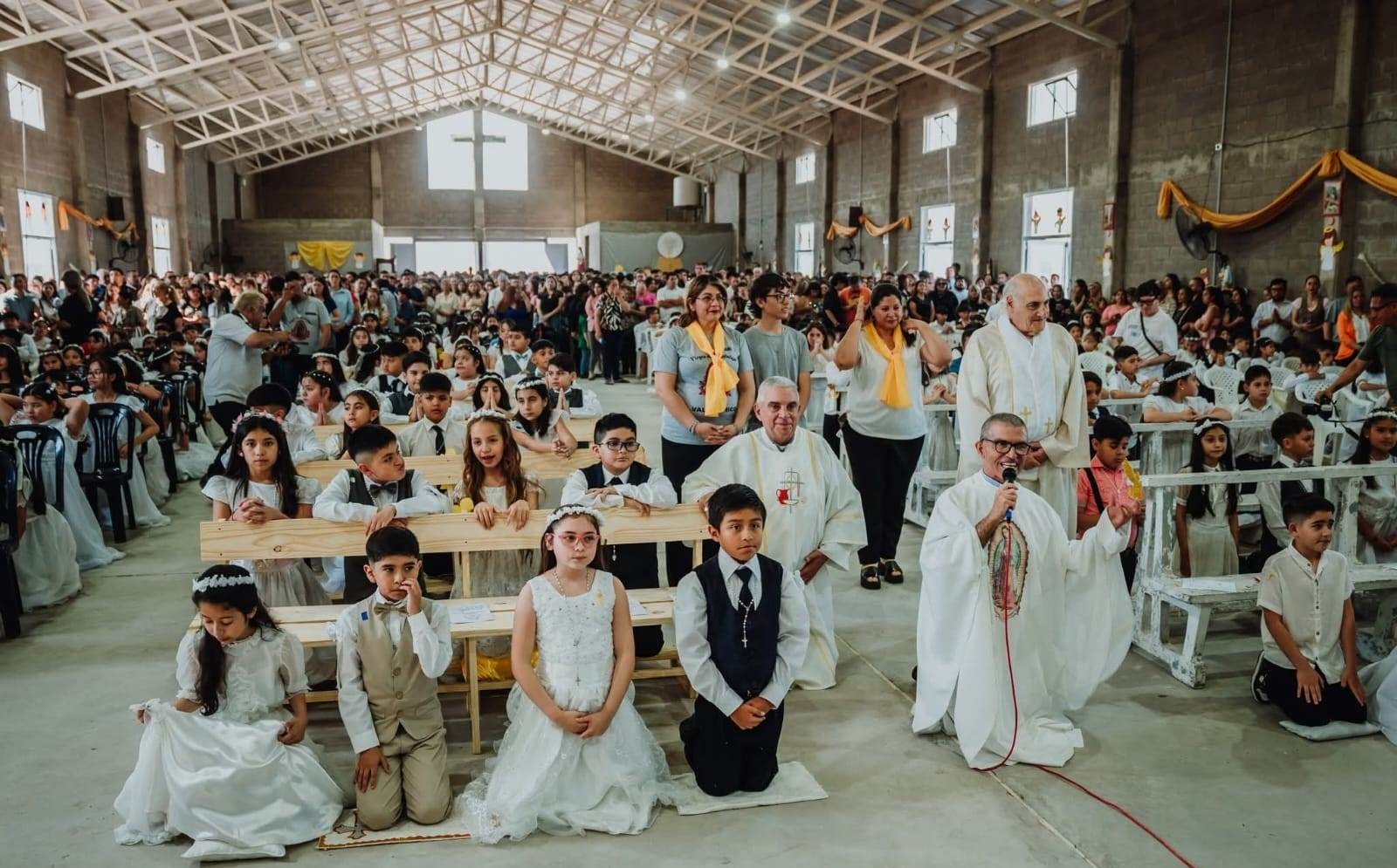 Los chicos estuvieron acompañados por sus padres, familiares, amigos y vecinos de la comunidad, quienes vivieron juntos una gran fiesta en torno a Jesús Eucaristía.