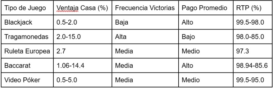 Ventaja de la Casa en Diferentes Tipos de Juego