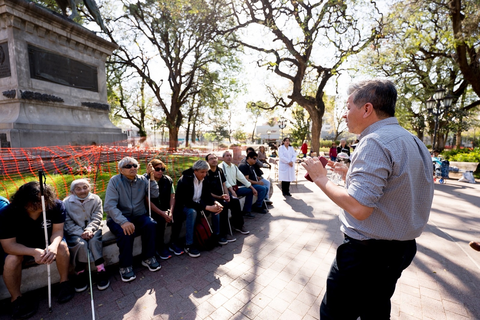 Roberto, uno de los estudiantes y guía turístico no vidente, también sumó sus conocimientos durante el recorrido, enriqueciendo el intercambio con los aportes de su propia experiencia.
